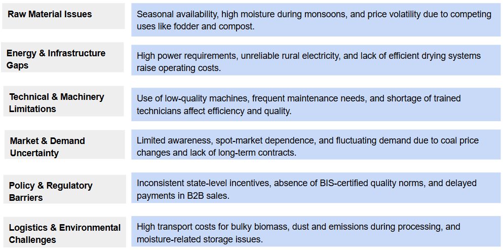- Strengthen Market Linkages: Target industrial clusters (brick kilns, boilers, cement), pursue co-firing contracts with power plants, and use digital platforms for B2B sales.