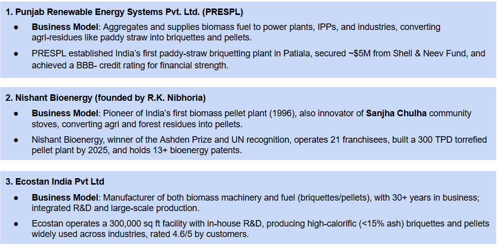 - Policy Backing: Strong government push via biomass co-firing mandates, ₹858 crore MNRE support, and carbon credit frameworks under development.