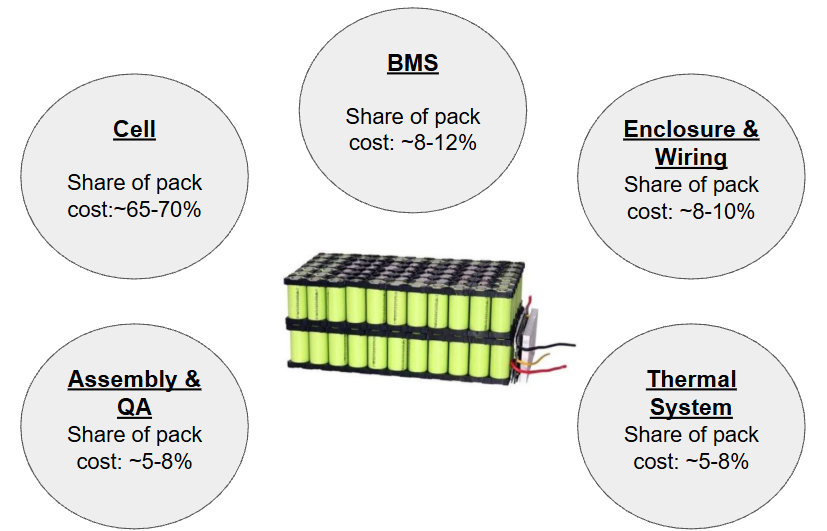 - Battery packs contribute ~30-40% of total EV cost, making them the most critical component in the electrification value chain.