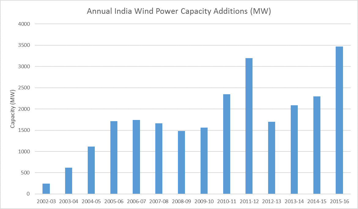 India’s wind power installed capacity in 2016, is estimated to increase 20% over last year to 2,800 MW, led by favorable policy support that has encouraged both independent power producers (IPP) and non-IPPs.